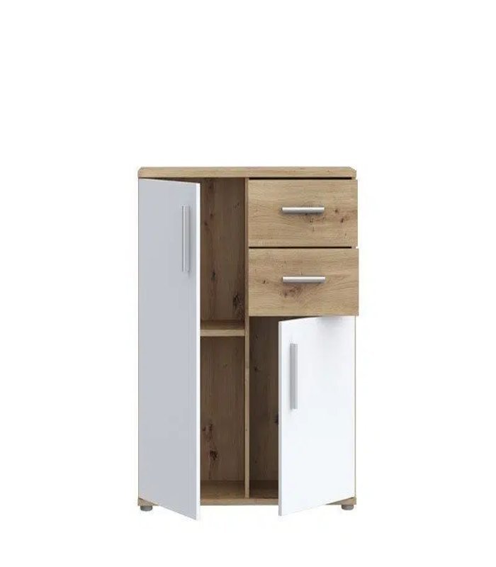 Moderna komoda VULCANO 4 u kombinaciji artisan hrasta i bijele boje nudi praktično rješenje za odlaganje uz 2 vrata i 2 ladice. Idealan izbor za dnevni boravak, spavaću sobu ili hodnik.