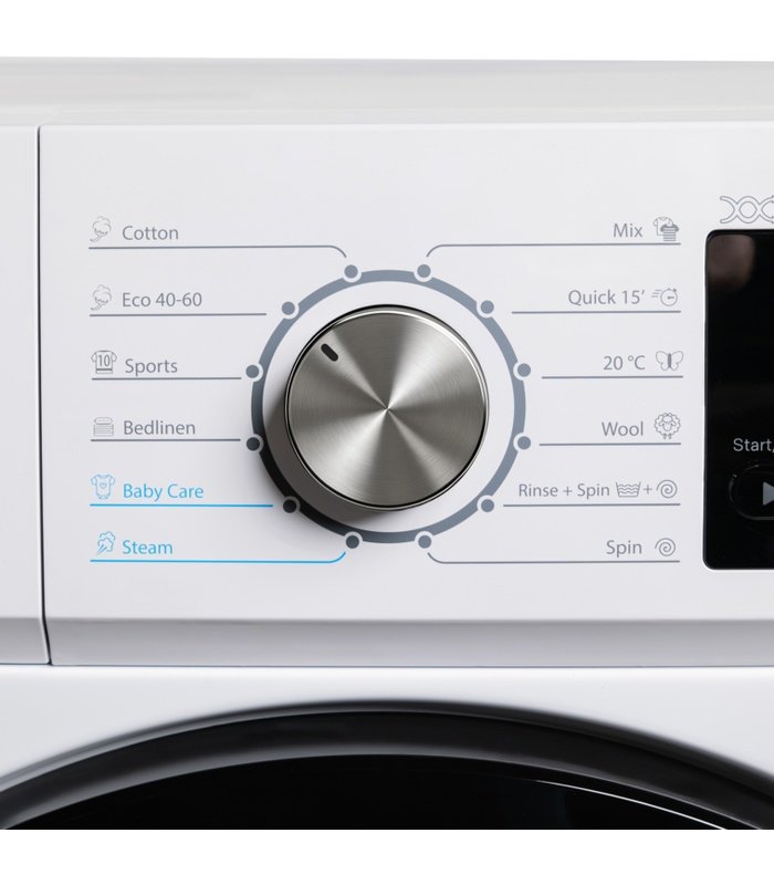 Funkcija sterilizacije bubnja doprinosi svežini i čistoći veša. Kontrolna tabla mašine za pranje veša sa centralno smeštenim rotirajućim dugmetom za odabir programa i velikim ekranom pomažu u pokretanju procesa pranja u samo tri jednostavna koraka.